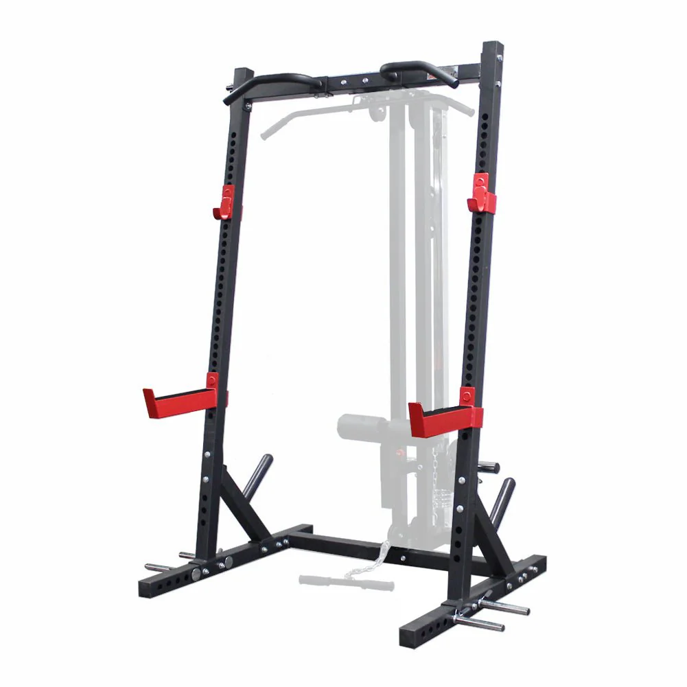 The AmStaff TP007 Half Rack System is built for serious lifters who want strength, stability, and versatility in their training. With its heavy-duty steel frame, adjustable safety bars, and compact footprint, it supports all your core lifts—from squats and bench press to accessory work.